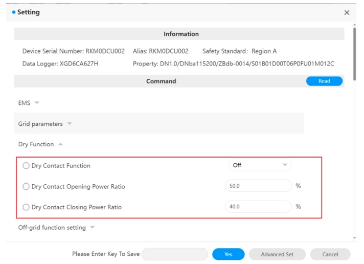 Growatt MID-XH - Dry contact (někdy označováno jako Dry connect) neboli Suchý kontakt